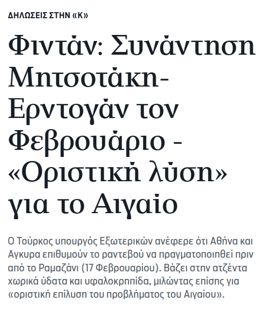 Η δήλωση του Τούρκου υπουργού Εξωτερικών Χακάν Φιντάν περί «μόνιμης παράδοσης του Αιγαίου και της Κύπρου» δεν ήταν τυχαία.