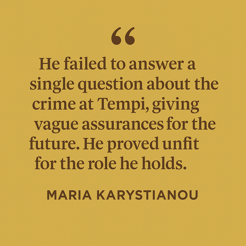 📰 Report | Karystianou’s Strong Statement on Tempi – EU Commissioner Tzitzikostas Accused of Silence