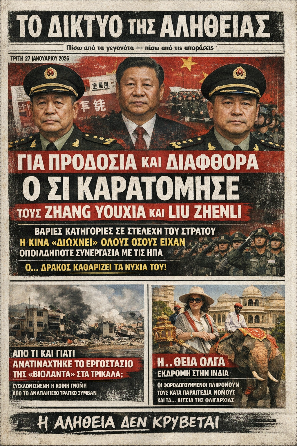 Καρατομήσεις στον κινεζικό στρατό, αίμα στην ελληνική εργασία και χλιδή της ολιγαρχίας με δημόσιο χρήμα. Τρία γεγονότα, μία κοινή πολιτική αλήθεια.