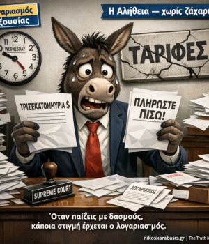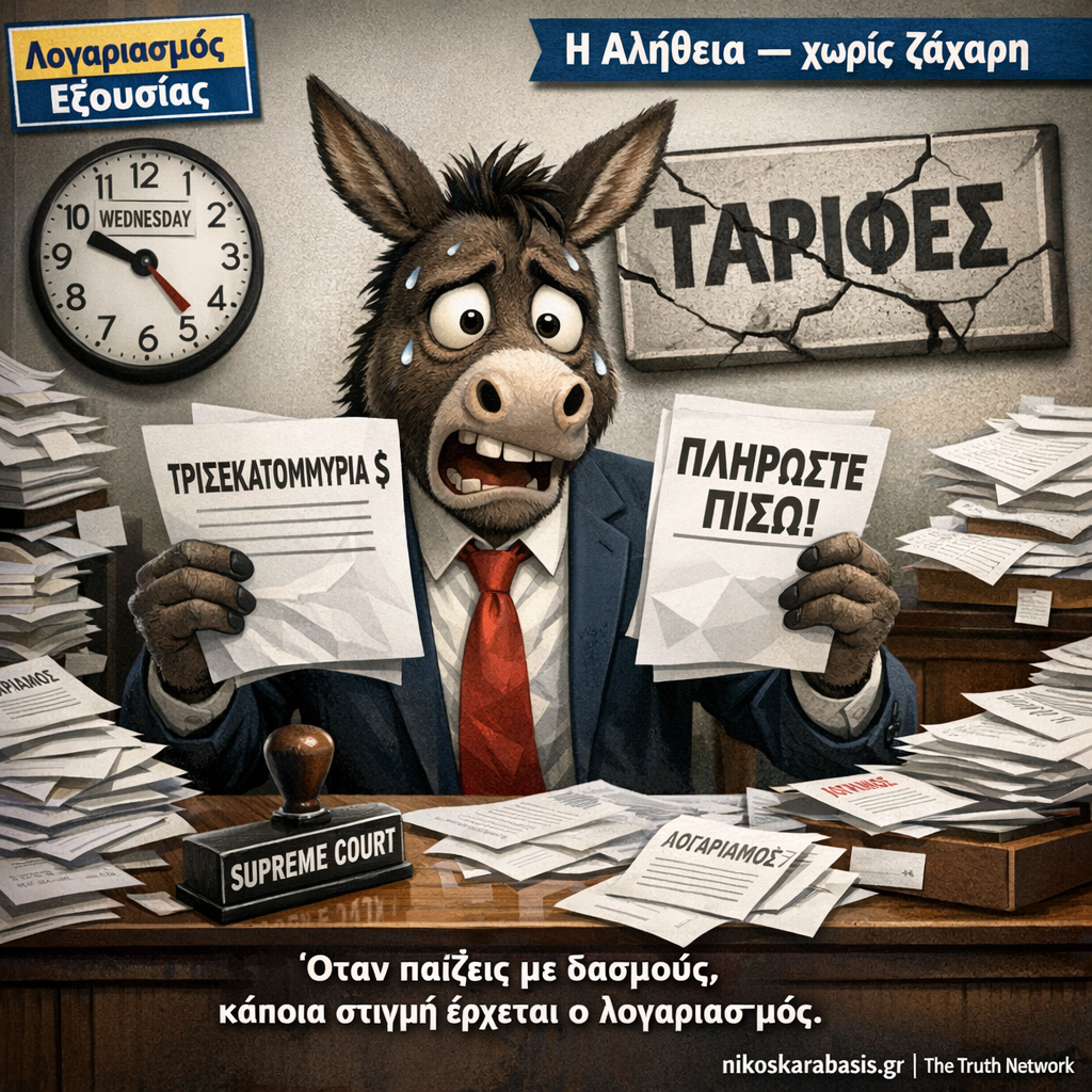 Η πολιτική των δασμών παρουσιάστηκε ως εργαλείο «εθνικής ασφάλειας» και ισχύος. Όμως η Δικαιοσύνη εξετάζει αν αυτό το εργαλείο χρησιμοποιήθηκε εκτός θεσμικών ορίων.