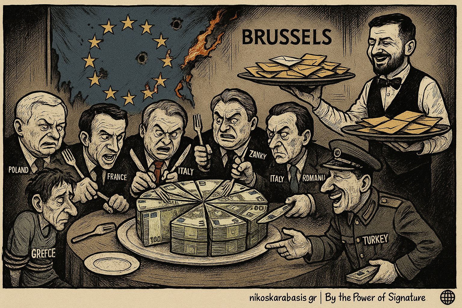 Γιατί τι βλέπουμε στην πραγματικότητα; Ότι μοιράστηκαν τα δισεκατομμύρια με μαθηματική ακρίβεια. Ότι έφτιαξαν μια λίστα με νικητές και χαμένους. Κι ότι στο τέλος, οι μίζες γίνονται «επενδύσεις». Και η Ουκρανία; Το πρόσχημα για να πέσουν οι υπογραφές. Με τον αρχιμιζαδόρο Ζελένσκι να παίζει τον ρόλο του τιμητή. Η Ελλάδα; Πληρώνει, δανείζεται, μένει απροστάτευτη.