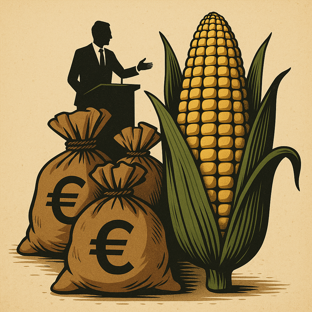 But history remembers well. It remembers the corn. It remembers the subsidies. It will remember the €415 million fine and the heavy silence that wrapped it like cellophane. Because in the end, you may think you’re governing—but you’re just stuffing the sack. And one day, you’ll be forced to show how much… corn it holds.