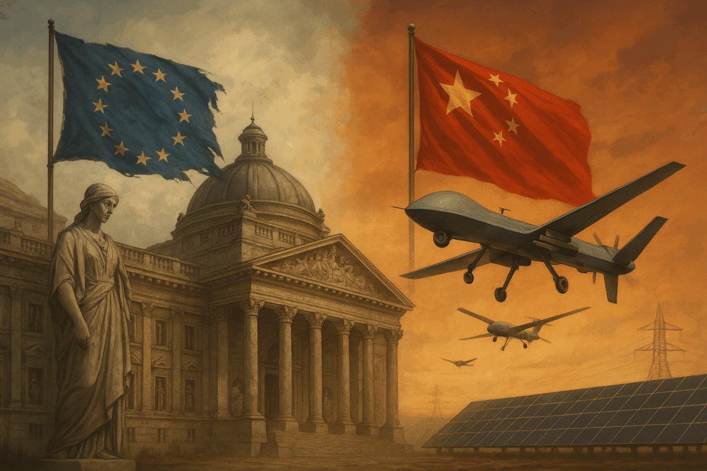 Μέσα σε αυτό το τοπίο, η Ευρώπη μοιάζει παραλυμένη, αποπροσανατολισμένη, αδιόρατα υποτελής στις μεγάλες δυνάμεις. Η πάλαι ποτέ κοιτίδα των φιλοσοφιών, των ελευθεριών και της Δημοκρατίας, διολισθαίνει σε έναν παθητικό συντηρητισμό χωρίς όραμα.