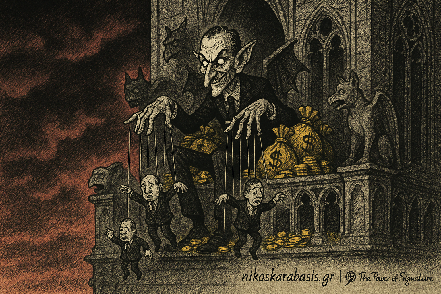 Δεν είναι απλώς ένας πολιτικός. Είναι ο αρχιτραπεζίτης της εξουσίας. Στο ένα χέρι κρατάει τα συμβόλαια των πολυεθνικών και στο άλλο τις εντολές των Βρυξελλών. Ό,τι πουλάει για «όραμα» είναι στην πράξη μια ψυχρή εξίσωση: κέρδος για τους λίγους, αδιέξοδο για τους πολλούς. Και αυτό δεν είναι «σατανισμός» με την αστεία καρικατούρα της λαϊκής φαντασίας. Είναι η καθημερινή τεχνοκρατική κόλαση που χτίζεται μέρα με τη μέρα.