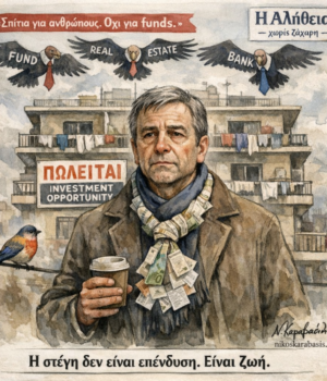 Όταν το σπίτι παύει να είναι σπίτι και γίνεται «επενδυτική ευκαιρία» — η στέγη ως όχημα μαύρου πολιτικού χρήματος και η εξορία της μεσαίας τάξης.