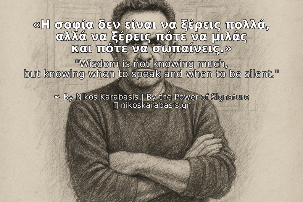 Η σοφία δεν είναι να γεμίζεις το στόμα, αλλά να κρατάς τη στιγμή που η σιωπή λέει περισσότερα από τις φωνές».
