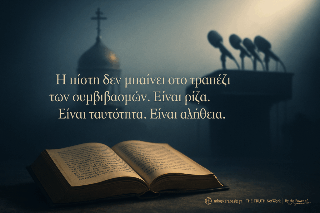 Αν θέλεις καθαρό λόγο, όχι θεατρινισμούς… ακολούθησε το Δίκτυο. Αν θέλεις αλήθεια χωρίς φόβο… πάτα follow. Η φωνή μας δυναμώνει μόνο όταν ενώνεται. Μοιράσου το. Σχολίασε. Κράτα τη συζήτηση ζωντανή. Γιατί η πίστη και η Ιστορία δεν ξαναγράφονται από επικοινωνιολόγους. Μια συζήτηση που μοιάζει με «σύγκλιση»… μπορεί να γίνει η αρχή μιας επικίνδυνης ολίσθησης. Η Ορθοδοξία δεν είναι εικόνα. Είναι πίστη. Και δεν θα τη διαπραγματευθούμε. 🌐🔗 nikoskarabasis.gr | The TRUTH NetWork | By the Power of Signature 💬 Οι εποχές αλλάζουν. Αλλά η Αλήθεια δεν παραδίδεται. Πιστεύεις ότι η συνύπαρξη οδηγεί σε ένωση ή σε παραχάραξη; Γράψε τη θέση σου👇 #αλήθεια #πίστη #ορθοδοξία #πολιτική #ιστορία #ελλάδα #εκκλησία #φαναρί #σχόλιο #κοινωνία #TheTruthNetwork #KarabasisReports