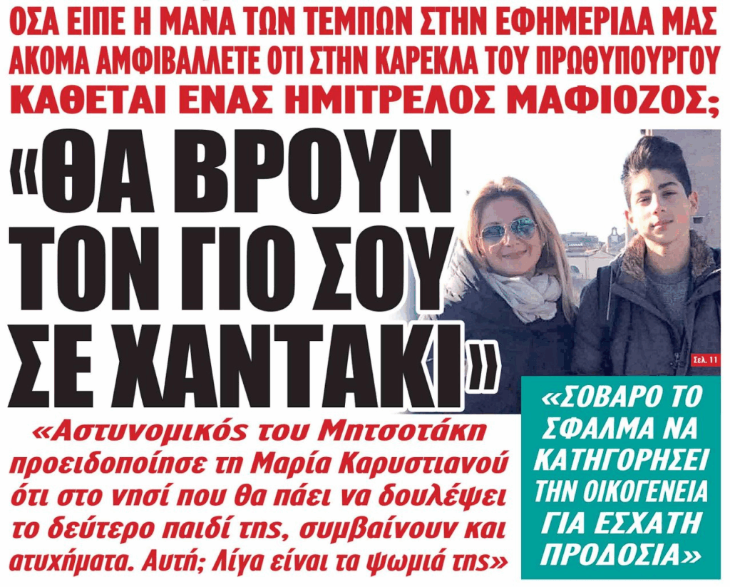 Η συνέντευξη της κ. Καρυστιανού με όλες τις αποκαλύψεις αναμένεται να δημοσιευθεί στο σύνολό της τις επόμενες ώρες.