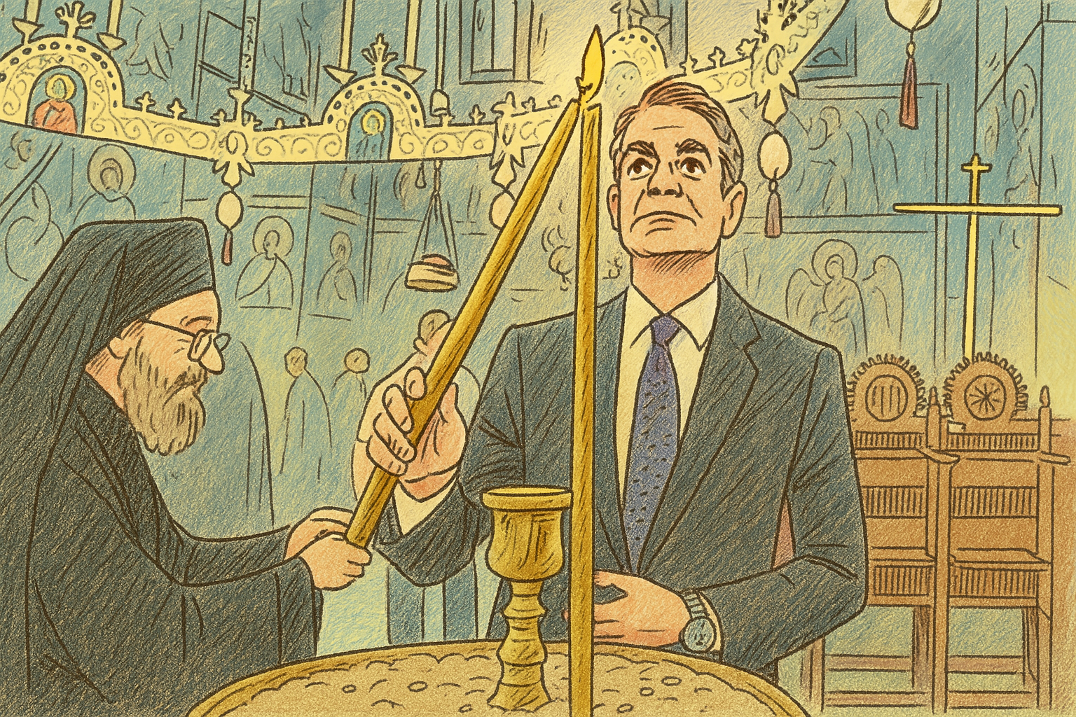 🕯️ Πήγε στο Περιβόλι της Παναγίας με κοστούμι και λόγο φορτισμένο.