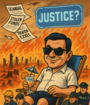 Χαμογελάει για τα like, ενώ γύρω του όλα καίγονται. Κυριολεκτικά.