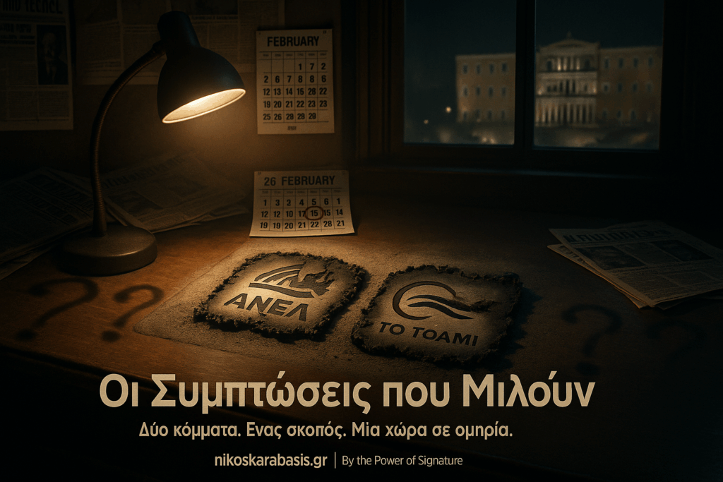 Δύο κόμματα “ειδικού σκοπού”. Μία πολιτική δυναστεία που κυβερνά επτά χρόνια σαν οικογενειακή εταιρεία. Κι ένας λαός που πληρώνει με αίμα τα μερίσματα της εξουσίας. Από το 2012 έως το 2014, δύο “τυχαίες” ιδρύσεις κομμάτων έκοψαν τον δρόμο του Αντώνη Σαμαρά. Το 2019, όλο το Ποτάμι μπήκε στην κυβέρνηση Μητσοτάκη. Και σήμερα, βγάζουν ξανά τον Καμμένο από τη ναφθαλίνη, μόνο και μόνο για να εμποδίσουν τον ίδιο άνθρωπο να επιστρέψει. Τόσο μίσος πια; Ή μήπως τόσος φόβος; Οι συμπτώσεις δεν είναι ποτέ αθώες. Κι η Αλήθεια, όσο κι αν την πολεμούν, πάντα βρίσκει τρόπο να ακουστεί.