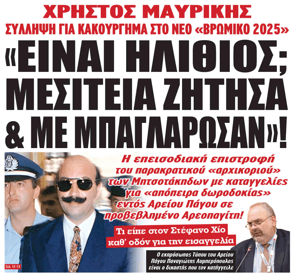 Δεν είναι λίγοι όσοι αναρωτιούνται γιατί ο “εθνικός κοριός” επανεμφανίζεται σε τέτοιο χρονικό σημείο. Ο Χρήστος Μαυρίκης δεν είναι ένας απλός πολίτης που επιχείρησε να δωροδοκήσει έναν δικαστή. Είναι ο άνθρωπος που – υπό τις εντολές του στρατηγού Γρυλλάκη – στήριξε τον παρακρατικό μηχανισμό παρακολουθήσεων επί Μητσοτάκη, ο οποίος οδήγησε στην παραπομπή του πρώην πρωθυπουργού το 1994.