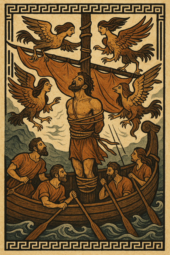 They were no monsters, they held no weapons. But they caused ruin. They offered revelation, yet delivered oblivion. And then Odysseus, instead of ignoring them or challenging them, does something deeply human: he asks to be bound. Tied to the mast. His men’s ears sealed with wax. So he can hear — but not surrender. So he can pass — but not be lost. So he can reach Ithaca, body and soul intact.