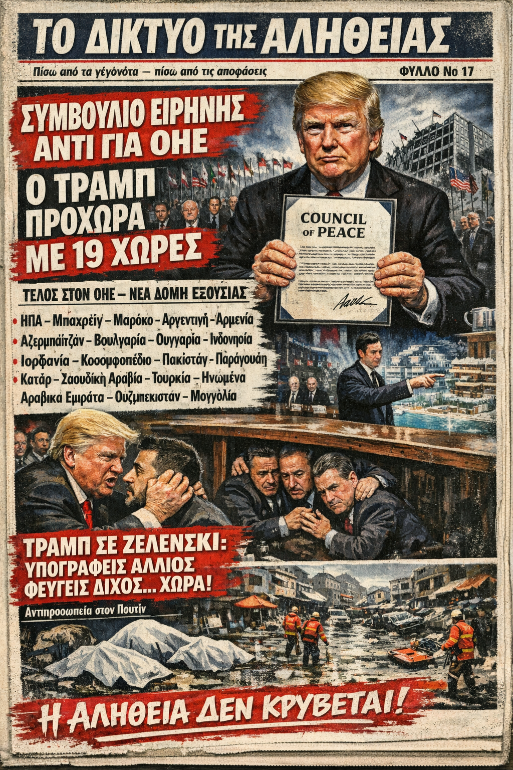 Και μαζί του υπέγραψαν δεκαεννέα κράτη, αφήνοντας τον ΟΗΕ να μοιάζει με άδειο κέλυφος, χωρίς εξουσία, χωρίς ρόλο, χωρίς μέλλον.