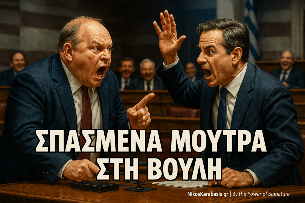 Άρα τι έχουμε; Μια Βουλή–καφενείο. Βουλευτές που απειλούν με ξύλο. Κόμματα που αλλάζουν ταμπέλες ανάλογα με την καρέκλα. Κι εμείς θεατές… σε μια τραγικωμωδία που παίζει non stop.