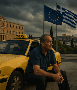 You know what it’s like, my friend, driving a taxi in Athens for all these years and hearing countless stories? Some passengers get in smiling, others sad, some fuming with anger. But no matter who they are, one thing remains: everyone carries the burden of this country’s story. And my job, though it may not seem like it, is to listen. And to think. Because what happened with Europe — I see it differently. From the street level.
