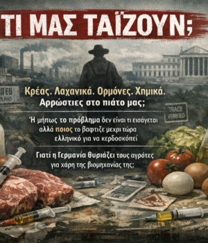 Και γι’ αυτό φωνάζουν ορισμένοι. Την αρρώστια και τα τρόφιμα – φρανκεστάϊν μας τα σέρβιραν…- και συνεχίζουν – ελληνοποιημένα. Για να κερδοσκοπούν.