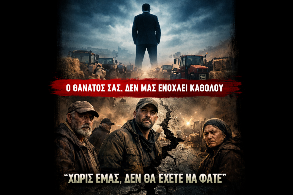 Όταν ένας κτηνοτρόφος χθες φτάνει στην αυτοκτονία επειδή τον χρεωκόπησαν, όταν η γη εγκαταλείπεται, όταν οι άνθρωποι της παραγωγής αντιμετωπίζονται ως «κόστος», κι όμως κανένα αυτί δεν ιδρώνει, τότε αυτό είναι πολιτική πράξη. Όχι ατύχημα.