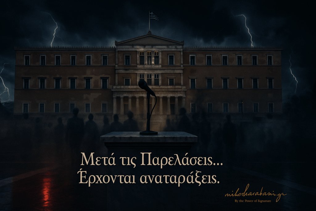 Μετά τις παρελάσεις, έρχεται καταιγίδα. Ονόματα που “καίγονται”, δικογραφίες που ανοίγουν, και ένα παρασκήνιο που βράζει στο Μαξίμου. Η τελευταία πράξη της επτάχρονης διακυβέρνησης ξεκινά — με ειρωνεία, ανατροπές και πολιτικό θρίλερ σε πραγματικό χρόνο.