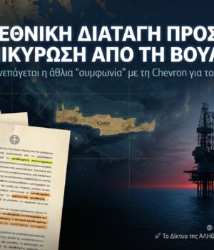 Σύμφωνα με το αποκαλυπτικό ρεπορτάζ του Μανώλη Κοττάκη, η εγκριτική πράξη του Ελεγκτικού Συνεδρίου, το οποίο συνεδρίασε στις 22 Δεκεμβρίου 2025 και στις 9 Ιανουαρίου 2026, για να ελέγξει τη νομιμότητα της σύμβασης του Ελληνικού Δημοσίου με τη Chevron και την κοινοπραξία που θα αρχίσουν σύντομα έρευνες για εξορύξεις υδρογονανθράκων σε δύο θαλάσσια οικόπεδα νοτίως της Κρήτης, παρουσιάζει τεράστιο ενδιαφέρον, μεταξύ άλλων, για μια προσθήκη της τελευταίας στιγμής. Όπως αποκαλύπτεται στις σελίδες 18 και 19 της πράξης, έχει προστεθεί την τελευταία στιγμή ένας όρος για την περίπτωση που κατά τη διάρκεια των ερευνών, των εξορύξεων και της ενδεχόμενης εμπορικής εκμετάλλευσης του κοιτάσματος τεθούν εκτός των αρχικών οικοπέδων περιοχές οι οποίες ήταν σε δικαιοδοσία της χώρας μας, να μεταβιβαστούν με διεθνή συμφωνία σε άλλη χώρα. Ειδικότερα γίνεται αναφορά σε όρους, όπως αποκαλύπτει η κυριακάτικη «Εστία», σε «αναθεώρηση συντεταγμένων νοτίων και πλευρικών ορίων από τον εκμισθωτή» (Ελληνική Δημοκρατία), «μελλοντική οριοθέτηση υφαλοκρηπίδας και ΑΟΖ με διμερή η πολυμερή συμφωνία», «ηπειρωτική υφαλοκρηπίδα», «μελλοντική διεθνής συμφωνία οριοθέτησης», «αποχώρηση της εταιρίας από μέρος που θα μπορούσε να μην αποτελεί μέρος της ελληνικής υφαλοκρηπίδας ή ΑΟΖ», «περιοχές που η Ελληνική Δημοκρατία δεν θα διαθέτει κυριαρχικά δικαιώματα», «απώλεια οριοθετημένης περιοχής», «παραίτηση, ακόμη και αν έχει προσδιοριστεί περιοχή εκμετάλλευσης».