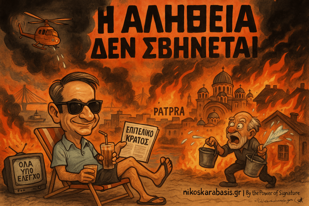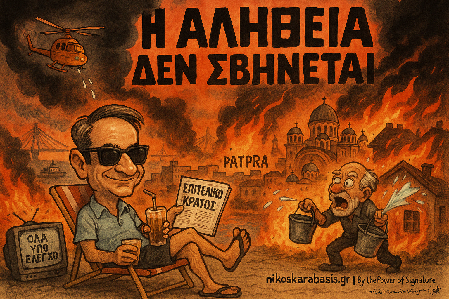 Η χώρα καίγεται. Η Πολιτική Προστασία είναι φάντασμα. Χωρίς πρόληψη. Χωρίς μέσα. Χωρίς σχέδιο. Οι μόνοι που κρατούν τη γραμμή είναι οι πυροσβέστες, οι εποχικοί, οι εθελοντές. Όλα τα άλλα; Επικοινωνία αντί ουσίας. Έξι χρόνια να σώζεται η εικόνα του Μητσοτάκη.