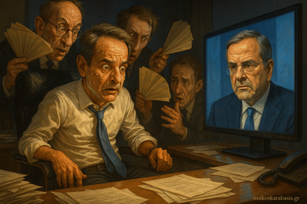 Χαρακτηριστικά είναι τα παραδείγματα της σαββατιάτικης Καθημερινής και της Βραδυνής της Κυριακής, όπου σε δύο διαφορετικά δημοσιεύματα παρουσιάζεται κατά πρώτον μία περίπου ειδυλλιακή δημοσκοπική κατάσταση για την Νέα Δημοκρατία και αναμασιέται κατά δεύτερον το φαιδρό επιχείρημα ότι η έντονη κριτική που ασκεί ο Αντώνης Σαμαράς στην κυβέρνηση έχει ως ελατήριο το δήθεν γινάτι του Μεσσήνιου για τον Κυριάκο Μητσοτάκη που τον διέγραψε.