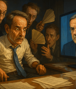 Αυτό που τον ενδιαφέρει είναι να αφήσει να πλανάται μία ψευδεπίγραφη παράσταση νίκης για τον Κυριάκο Μητσοτάκη, έστω κι αν επί των τελευταίων ημερών του η «γαλάζια» παράταξη έχει κατρακυλήσει μεταξύ του Είκοσι δύο και Είκοσι τέσσερα τα εκατό στην πρόθεση ψήφου, ίσως και αρκετά λιγότερο πλέον.