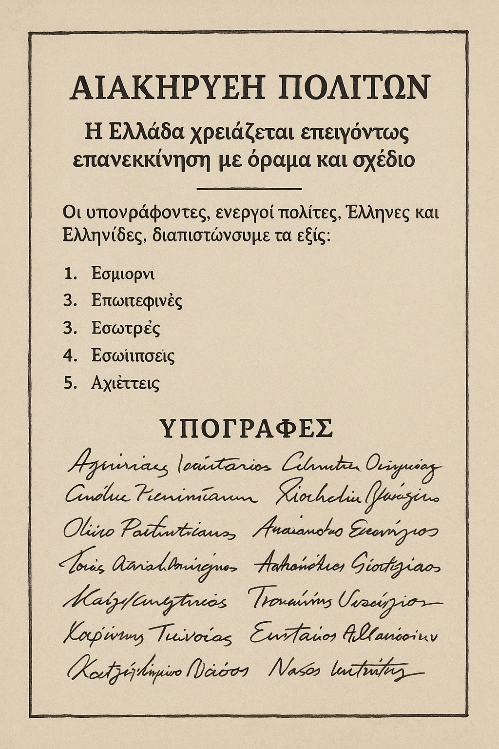🔷 Greece Calls for a Restart: The Declaration of 90 Citizens at ESIEA