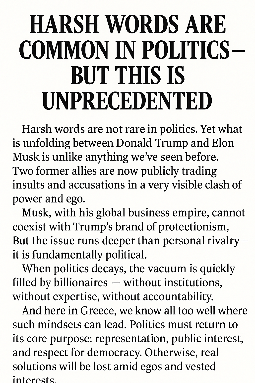 And here in Greece, we know all too well where such mindsets can lead. Politics must return to its core purpose: representation, public interest, and respect for democracy. Otherwise, real solutions will be lost amid egos and vested interests.