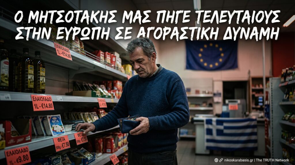 Η Ελλάδα, το 2025, βρίσκεται στην τελευταία θέση της Ευρωπαϊκής Ένωσης ως προς την αγοραστική δύναμη των πολιτών της.