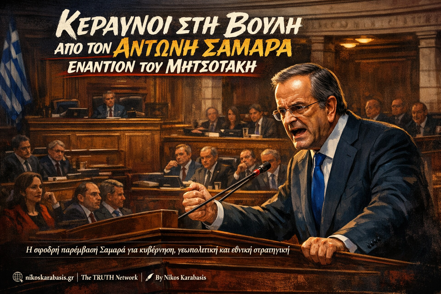 Με μια ιδιαίτερα αιχμηρή ομιλία από το βήμα της Βουλής, ο πρώην πρωθυπουργός Αντώνης Σαμαράς άσκησε σφοδρή κριτική στην κυβερνητική πολιτική, θέτοντας στο επίκεντρο τόσο τα εσωτερικά προβλήματα της χώρας όσο και τις διεθνείς γεωπολιτικές εξελίξεις.