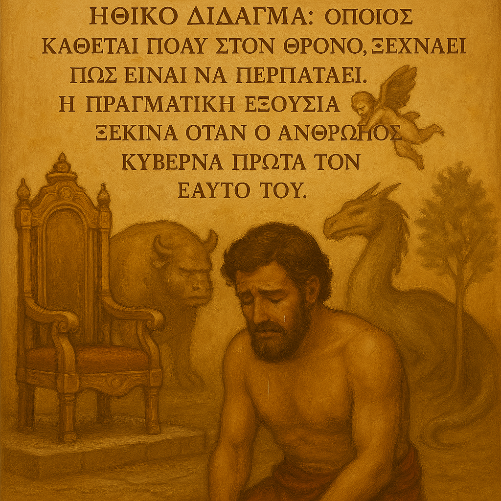 Όποιος κάθεται πολύ στον θρόνο, ξεχνάει πώς είναι να περπατάει. Η πραγματική εξουσία ξεκινά όταν ο άνθρωπος κυβερνά πρώτα τον εαυτό του.