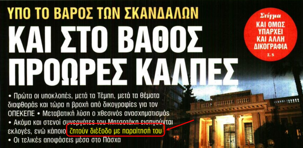 Τα ΝΕΑ ζητούν την ΠΑΡΑΙΤΗΣΗ του Μητσοτάκη