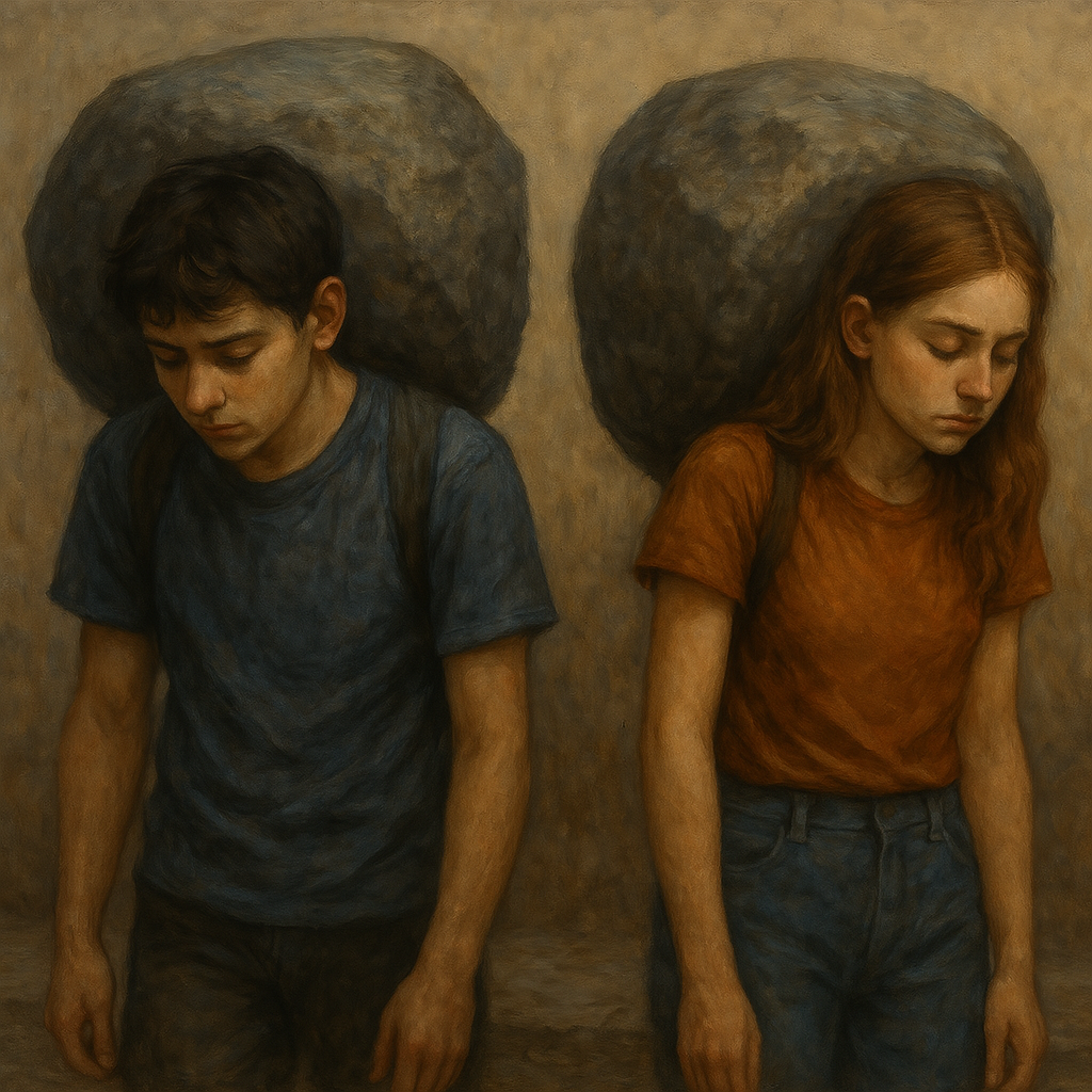 Κάθε μέρα, έφηβοι περπατούν δίπλα μας, με τους ώμους σκυμμένους από βάρη που δεν φαίνονται. Σχολική πίεση, οικογενειακά προβλήματα, κοινωνικές προσδοκίες, ψυχική εξάντληση. Είναι βάρη αόρατα — αλλά υπαρκτά.