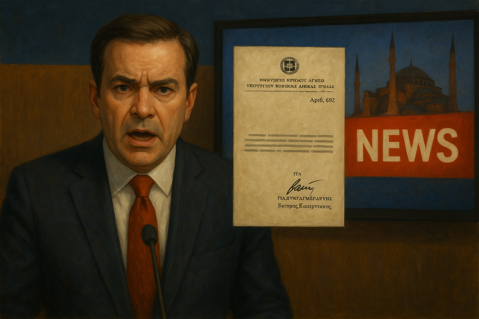 Κυρίες και κύριοι, η είδηση έσκασε σαν βόμβα – και όχι άδικα. Μιλάμε για ένα υπηρεσιακό σημείωμα του Στρατιωτικού Γραφείου του Υπουργού Εθνικής Άμυνας Νίκου Δένδια, με αριθμό 692, υπογεγραμμένο από τον συνταγματάρχη Πυροβολικού Έκτορα Κουτεντάκη, το οποίο ζητάει – προσέξτε – να μην πραγματοποιηθούν εκδηλώσεις για την 29η Μαΐου, ημέρα μνήμης της Άλωσης της Κωνσταντινούπολης.