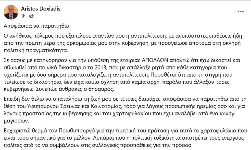 Update: Η πρώτη παραίτηση απο το νέο υπουργικό σχήμα “με το καλημέρα”…